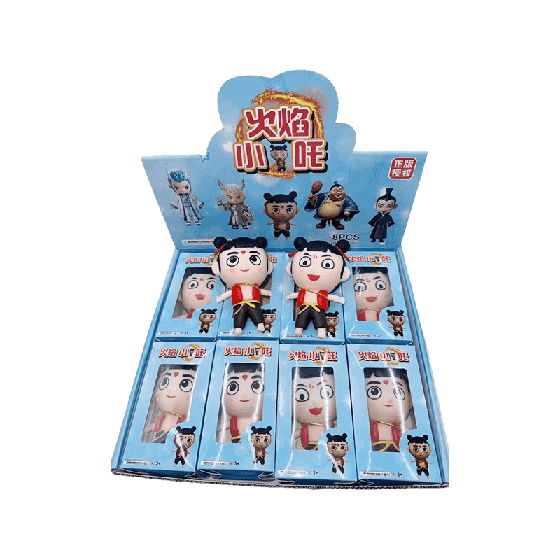 •英雄设计:以哪吒标志性的双髻、火热的表情和他标志性的风火轮俏皮的姿势为特色